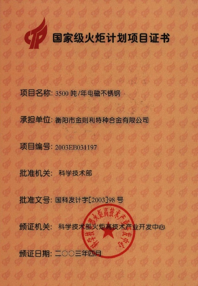 衡陽市金則利特種合金股份有限公司成立于一九九九年十二月,注冊資本人民幣兩千兩百萬元。注冊地址:衡陽市雁峰區(qū)白沙洲工業(yè)園長塘路2號。公司主營耐蝕軟磁合金,為湖南省高新技術(shù)企業(yè)。公司自成立以來,即致力于耐蝕軟磁合金的研發(fā)。 研制出的JL-31(00Cr13si2Pb)、JL-31B(00Cr13si2)、JL-31BS(00Cr13Si2S)、JL-37B(0Cr17Si2)、JL-37(0Cr17···